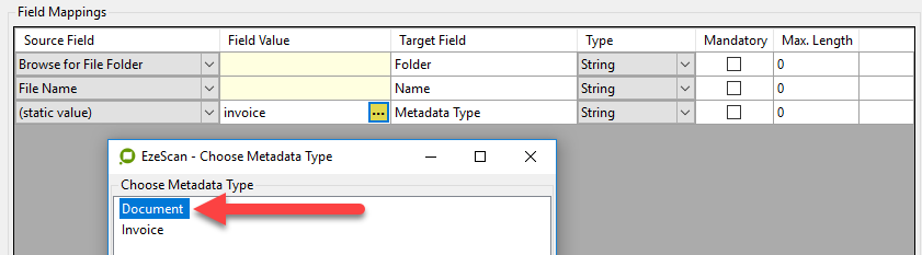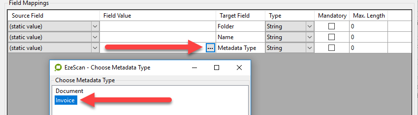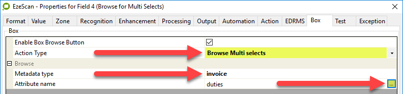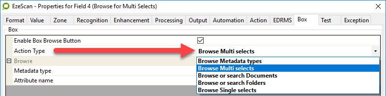 Both Multi and Single Select Types require a Metadata Type and Attribute Name defined within EzeScan.