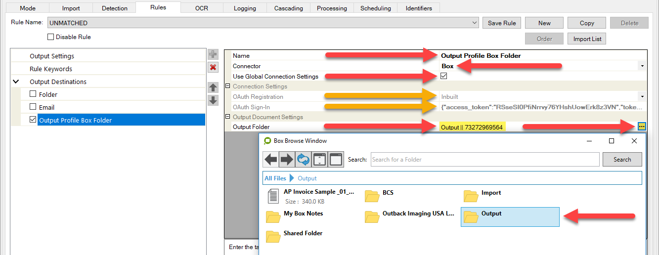 When the Routing Mode is set as below, a direct folder output into BOX can be performed. For example, using the Output Rule as shown above.