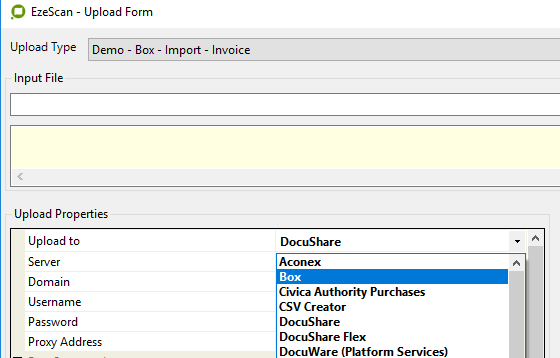 In EzeScan licensing the BOX connector will show in the UPLOAD options,