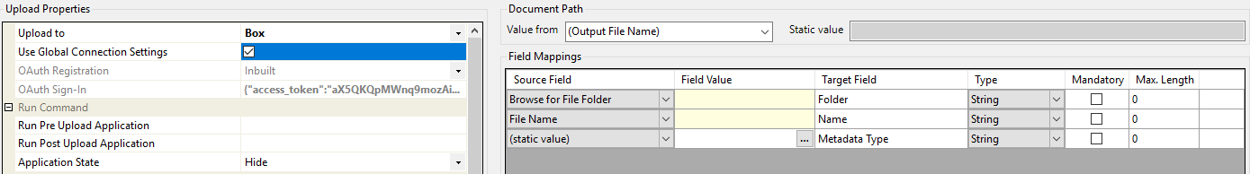 In this instance the configured Upload would be performing the Output to BOX instead of a direct Route folder output.