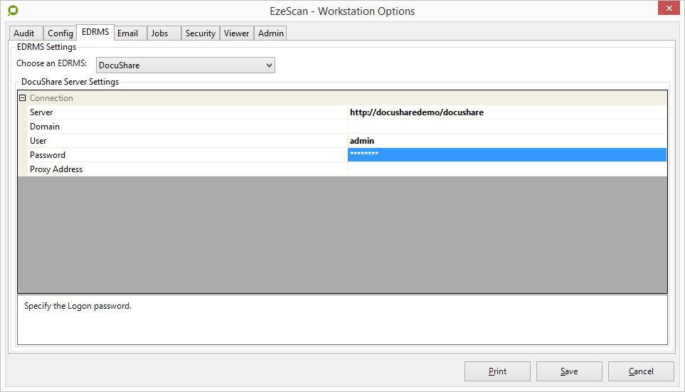 Proxy – If using a proxy server to get access the DocuShare Server enter the address in here.