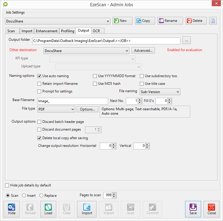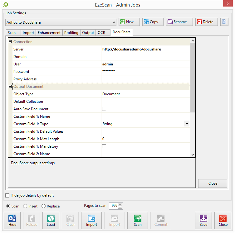 DocuShare Import functionality on a Job is only available when Output to DocuShare is configured - please refer to the section above on how to enable this.