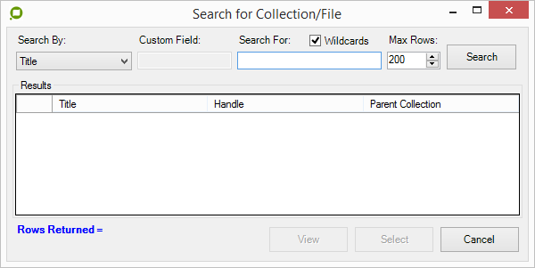 If the operator does not want to browse to the Document or Collection, they can use the Search option. In this screen below the operator can perform their search.