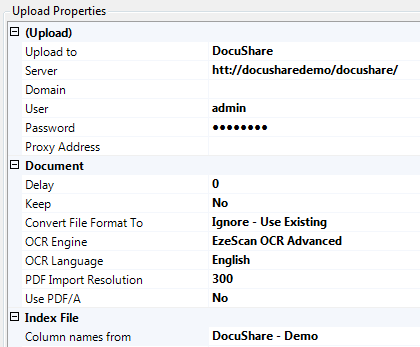The following information details the connectivity and functionality offered by the EzeScan integration with the with the DocuShare EDRMS solution. It details the available options and how to configure an EzeScan job into DocuShare.
