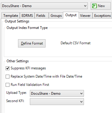 The KFI Field Settings allow the operator to browse into DocuShare during KFI indexing so the operator can then select folders, object types and metadata to be applied to the document.