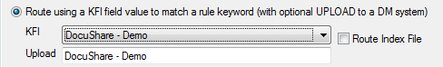 The Routing module is another way of configuring EzeScan to use the KFI and UPLOAD modules to upload documents to DocuShare. As it can be configured to run as a windows service it is recommended for jobs that do not require operator intervention. E.g. Automated workflows like barcoding of forms with exception handling enabled so they can be processed on an EzeScan PRO pc.