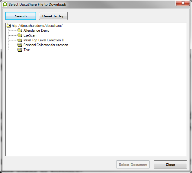 To import a file from the DocuShare Server simply select “Import” and EzeScan will connect with the DocuShare server and allow you to browse to the file required and then bring it in to allow the user to re-profile it.