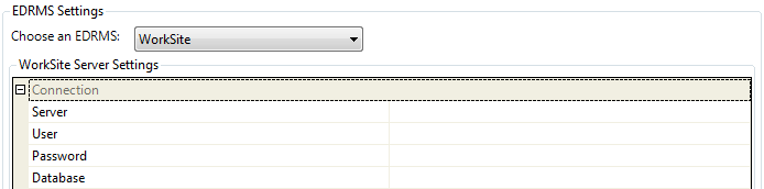 When configuring a Job, KFI or Upload to use the Autonomy WorkSite plugin the connection settings panel must be filled in. If only connecting to the one server, it is recommended that the WorkSite connection settings are configured globally.
