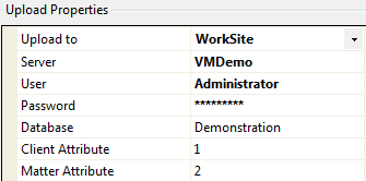 On the left hand side in the Upload Properties pane choose Autonomy WorkSite in the Upload To list.