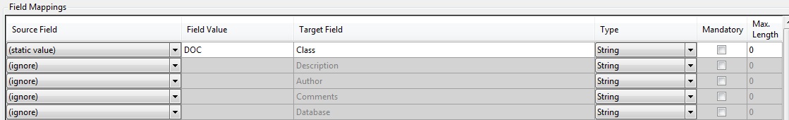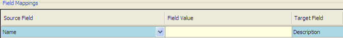 In the Field Mappings Grid the operator can apply the Source Field settings to the Target Field settings. In the example below the WorkSite Target Field Description is being populated by the KFI Source Field Name.