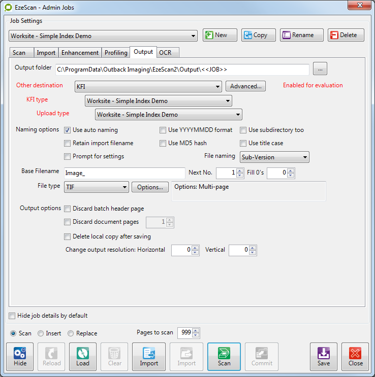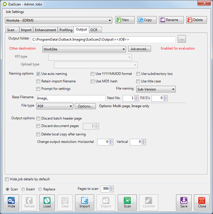 Using a simple output to WorkSite profile form. This can be created with a Job only, commonly used for low volume scanning or ad hoc type scanning.