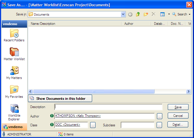 Click OK and the document will be saved into WorkSite.