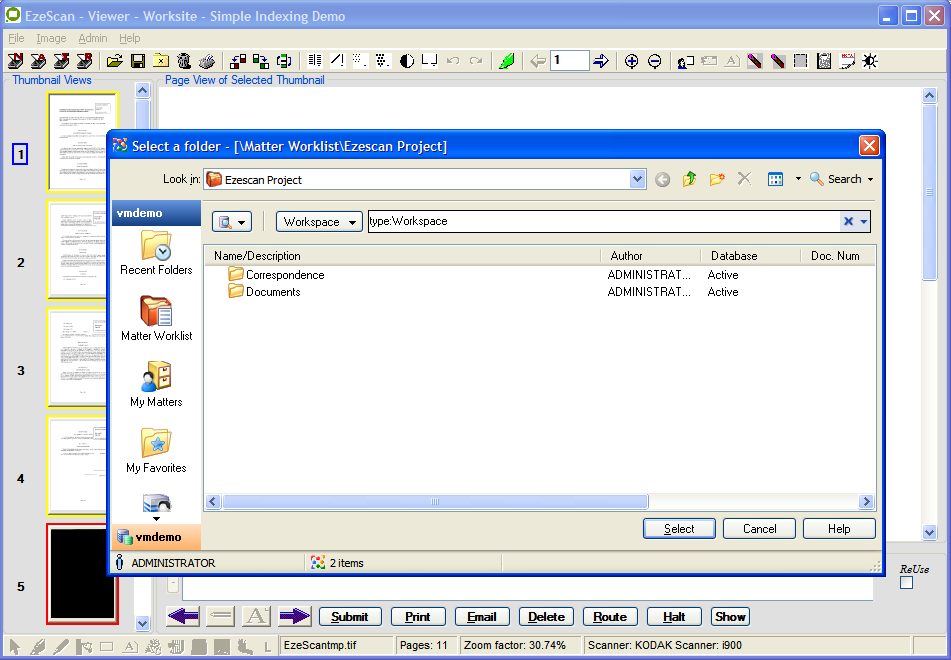 The EzeScan to WorkSite Profile Form functionality requires that the EzeScan Workstation be licensed with the EDRMS module.