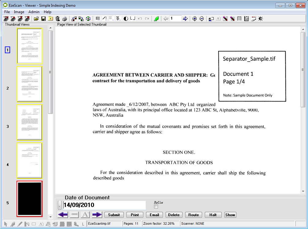 Press the F4 key or click the Profile buttonto index the document.In the Save As… window the operator can then apply the Description, Author, Class and other options to the document. The operator can choose the location to save the document.