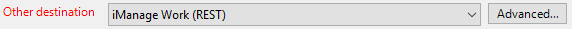 Click the Output tab and then choose the iManage Work Interface option from the Other Destination dropdown.
