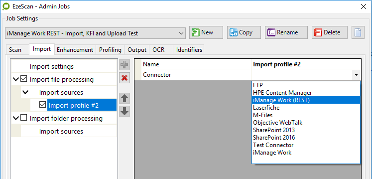 If there is a requirement to import documents from iManage Work into EzeScan, (e.g. for mark-up/redaction purposes) an EzeScan job can be configured to do this.