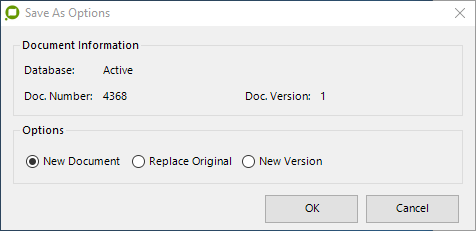 In the Save As Options window the operator can select to either: