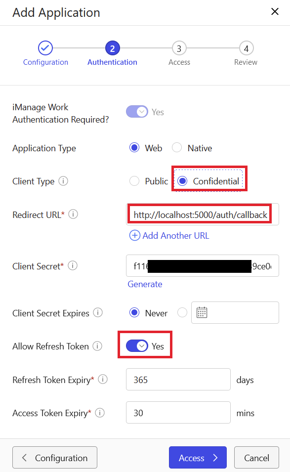 Client Secret | The Client Secret of the application registered in iManage Control Centre. Refer to How to register application in iManage Control Center. |