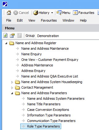Navigate to Name and Address Register → Name and Address Parameters → Role Type Parameters
