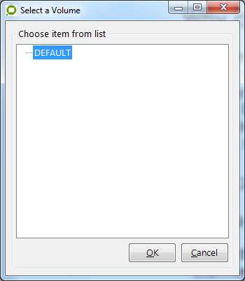 When the operator clicks the OK button, the selected Volume’s name is returned as the value.
