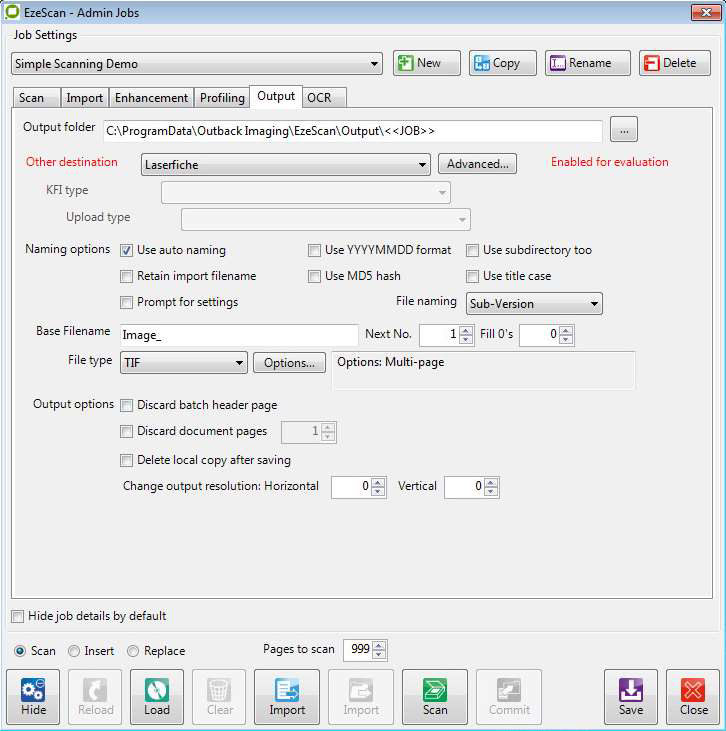 Laserfiche Import functionality on a Job is only available when Output to Laserfiche is configured - please refer to the above section for details on how to enable this.