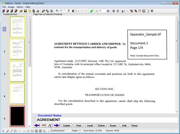 The operator can enter the Document Name.