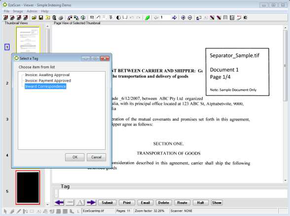 Press the F4 key or click the Profile buttonto index the document.In the Save Document window the operator can then Name, apply the Folder, Fields and Tags information to the document.