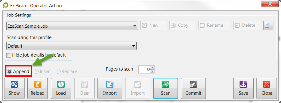 This option will allow an operator to either append pages to the current scan batch.