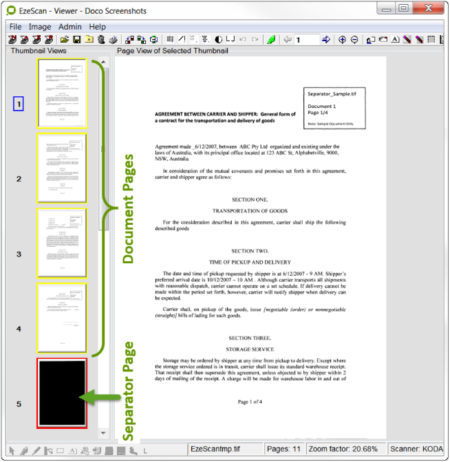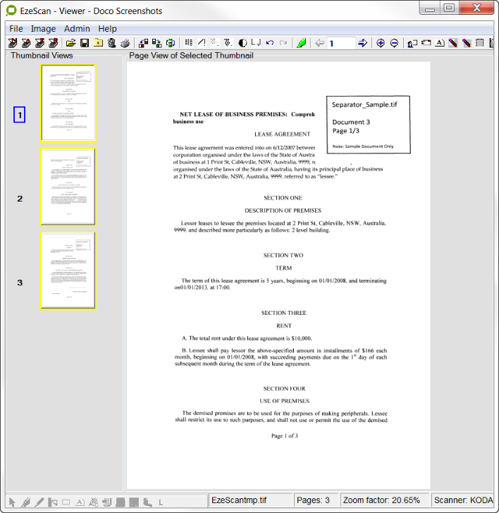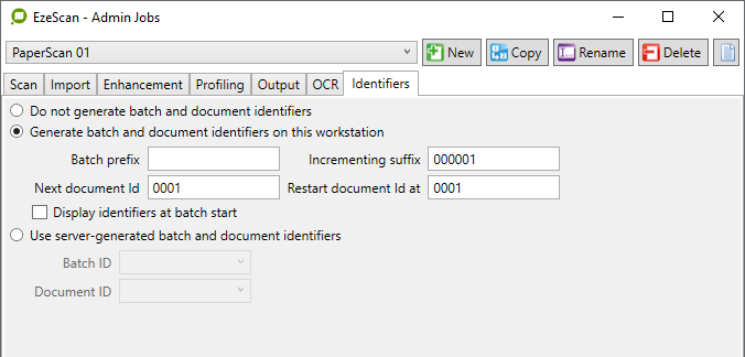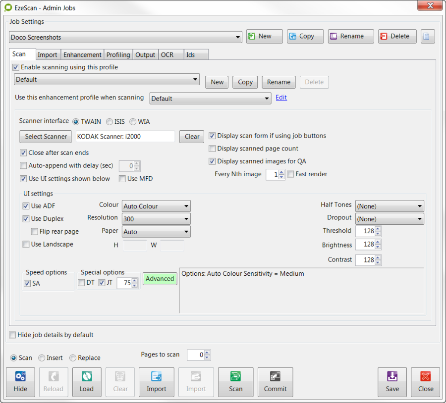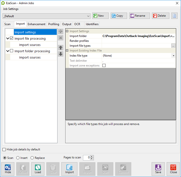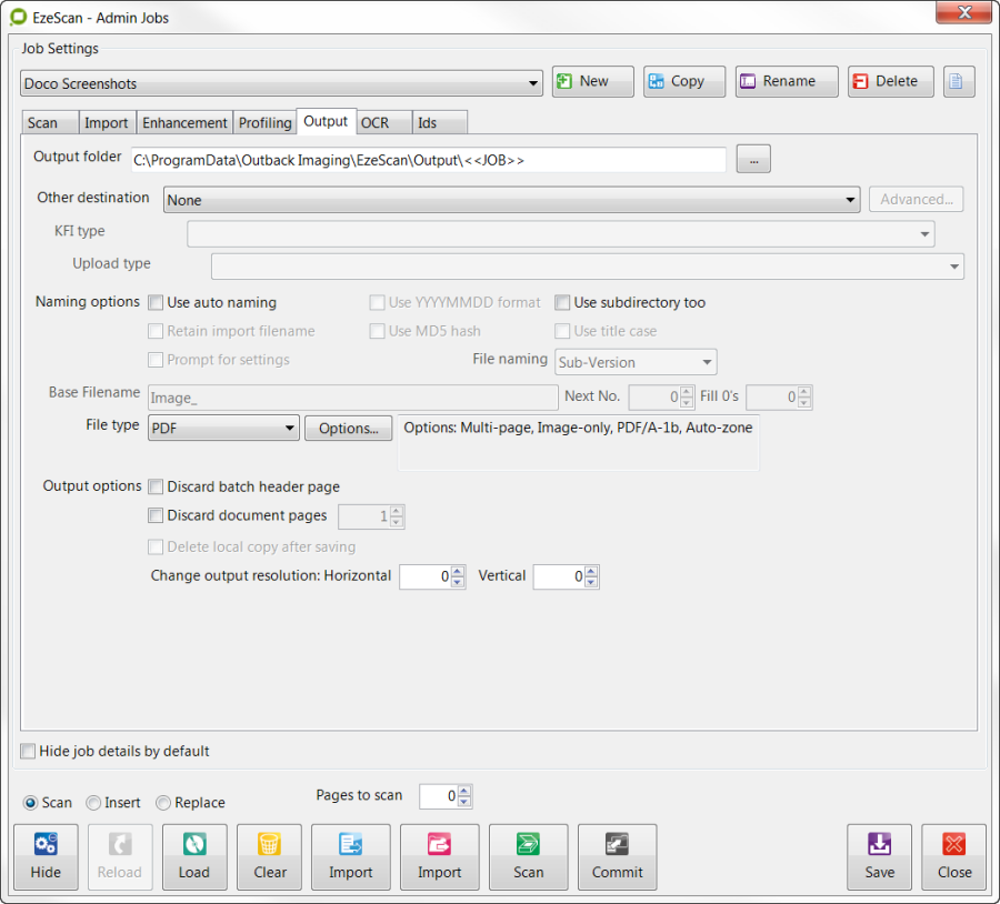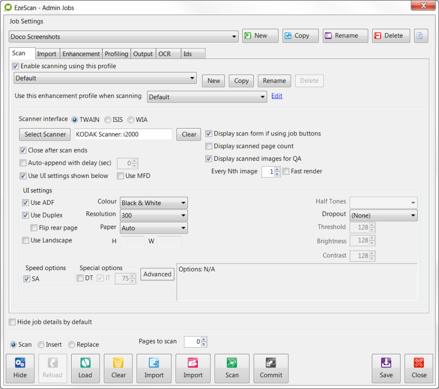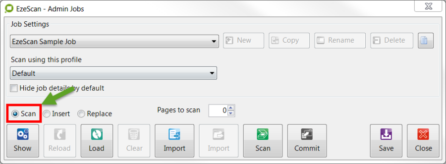 Placing batches into the Batch Manager is quite simple. Simply scan pages or import pages into the EzeScan Viewer using the Job Admin form Scan or Import buttons.