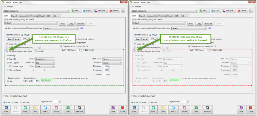 This option is used to scan documents through an EzeScan Job Type.