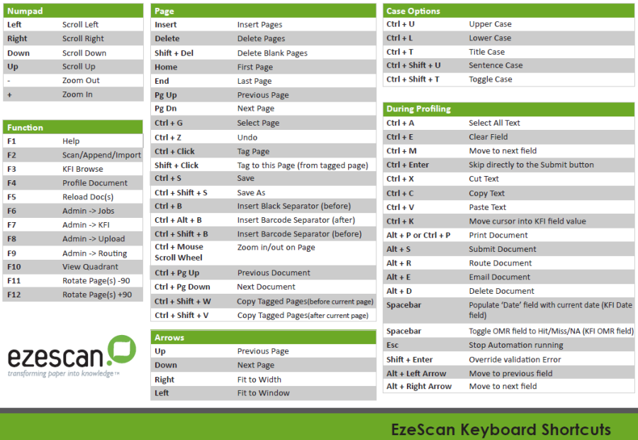 EzeScan uses various shortcut keys to provide faster processing of your invoices and documents.