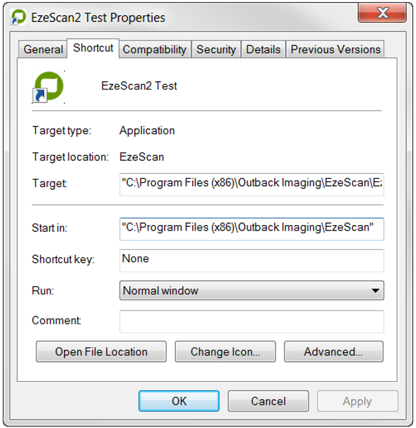 If you wish to open EzeScan and go directly to a route, you can use the following samples below to create a shortcut and EzeScan will load and go directly to that route
