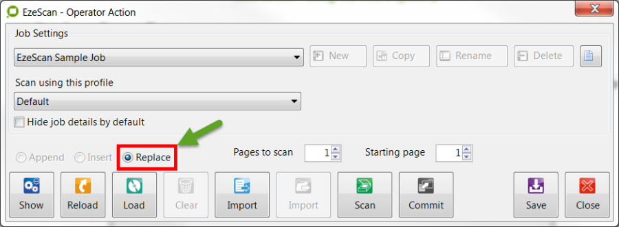 This option will allow an operator to replace pages in the current scan batch.