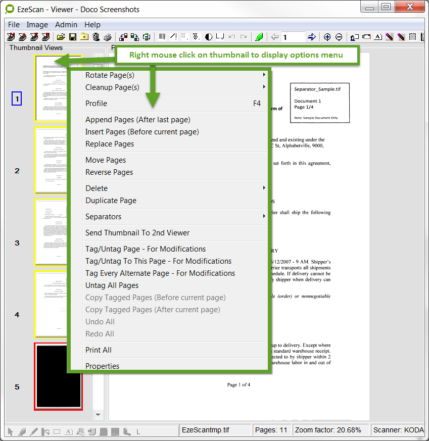 Once you’ve got the desired pages displayed in the EzeScan Viewer, there are 2 ways to invoke ‘keeping’ the batch in the Batch Manager.