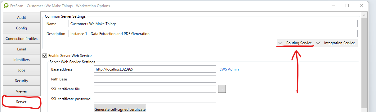 Pre-requisite: First, make sure you have enabled Use Dual Routing mode on the Admin->Workstation Options form, Viewer tab. Doing so, will allow the Route Admin form to be open, whilst the EzeScan Server service is running.