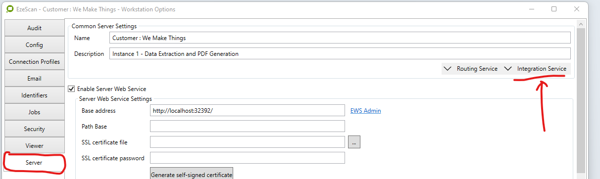 For EzeScan Server instance 1, then that would be the button labelled