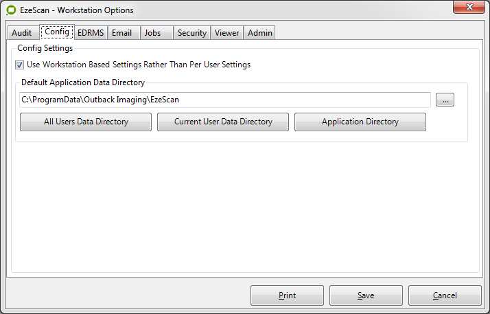 All Users Data Directory (Default) | When enabled, EzeScan saves it's settings in the common user application data directory.