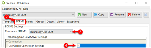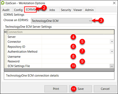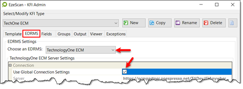 If using one ECM server for the EzeScan installation the configuration can be set in the EzeScan workstation options.