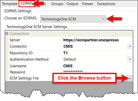 Click the Advanced button and select the TechnologyOne ECM tabFigure 2