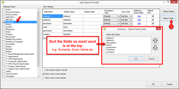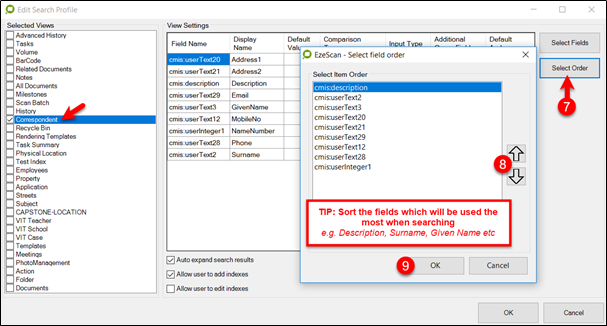 Click the OK button once the fields have been sortedFigure 10 - sorting the search fields