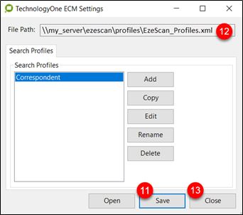 Click the Save button and save the newly creates search profile to a location which will be accessible by all operators using EzeScan to profile the CMIS related documents.