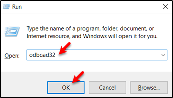 To do this open the Run command from the start menu, enter odbcad32 and click OK.Figure 12 - initaiting the ODBC Data Source Admin window