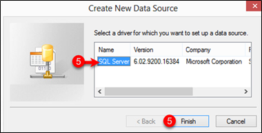Select the SQL Server driver and click FinishFigure 14 - Select the SQL Server driver and click Finish