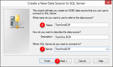 Select the SQL Server which the connection is to be created against and click the Next buttonFigure 15 - adding the data source and server name