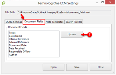 To update click on the Update buttonFigure 18 - TechnologyOne ECM Settings - Document Fields settings