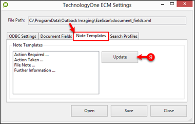 To update click on the Update buttonFigure 19 - TechnologyOne ECM Settings - Note Temaplates settings