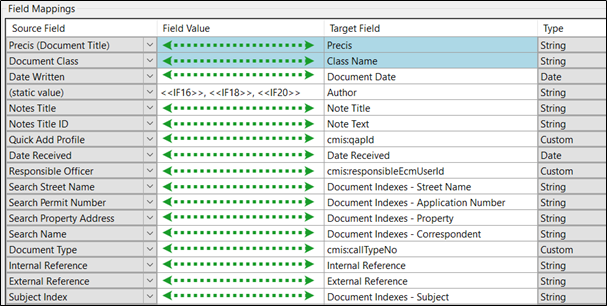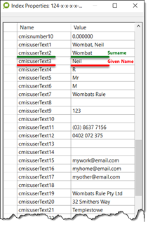 It is fairly straight forward to add 2 more KFI fields under an index field, such as a Correspondent/ Customer which can extract the required detail for use in the Precis/Document Title. In this section we will demonstrate how to set the fields up. The majority of the indexes may be treated in the same manner.