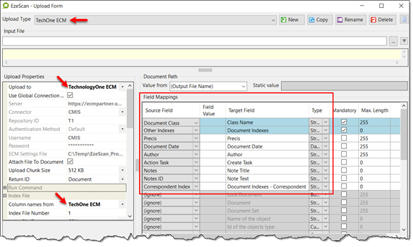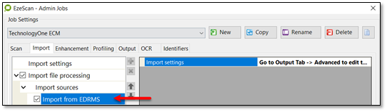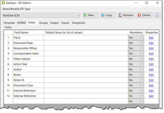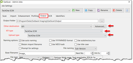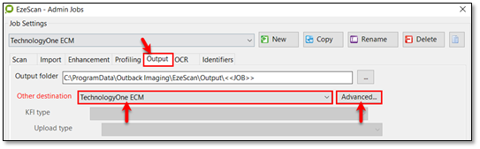 There is sample TechnologyOne ECM KFI / UPLOAD jobs in the downloads section on the EzeScan website (you must have an account to log-on & download)