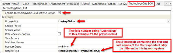 The Return Field should be the 2 text fields for Given Name and Surname values {cmis:userText3}space{cmis:userText2}