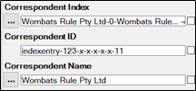 In the example in Figure 74 (refer previous sections) the Correspondent is added and the result should have a long text string which looks like this Wombats Rule Pty Ltd-0-Wombats Rule... -obj$ID 123-x-x-x-x-x-11